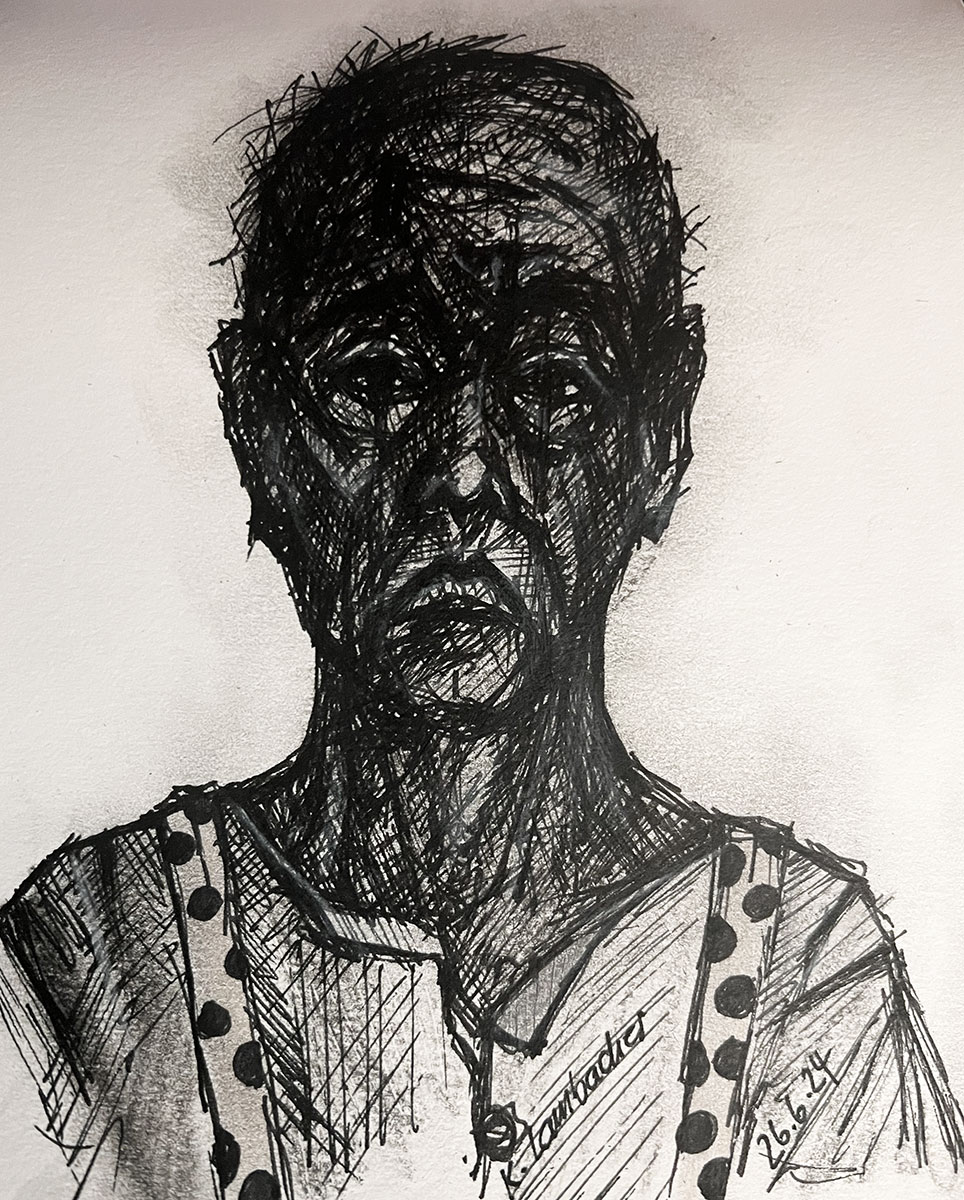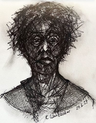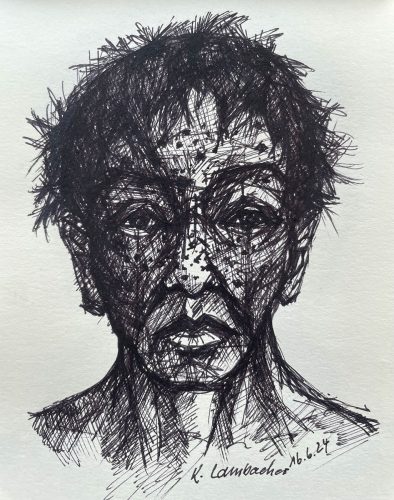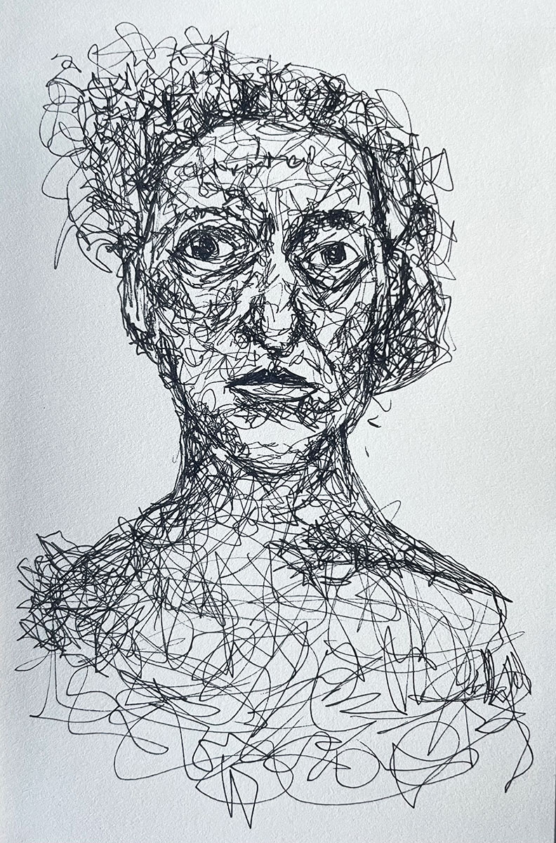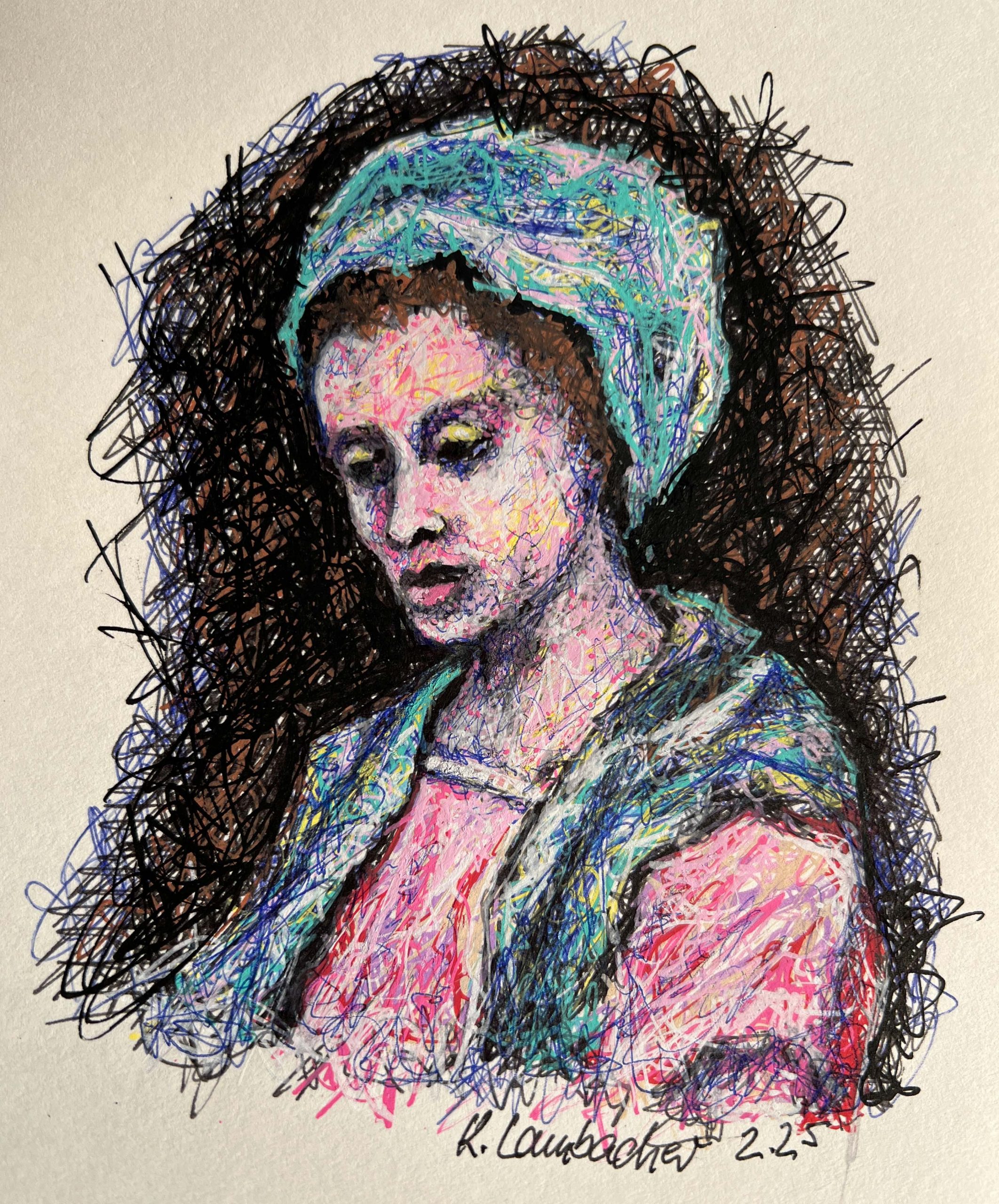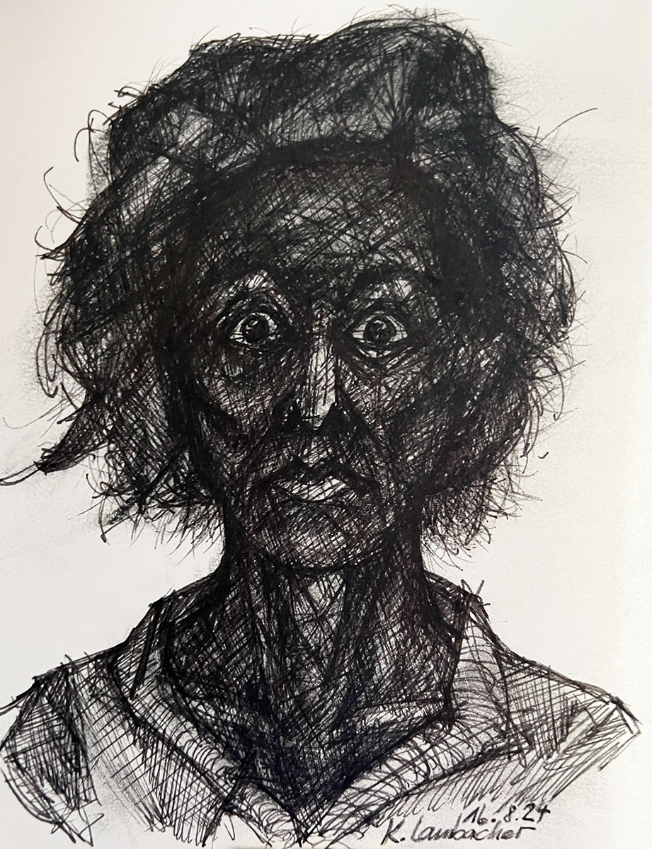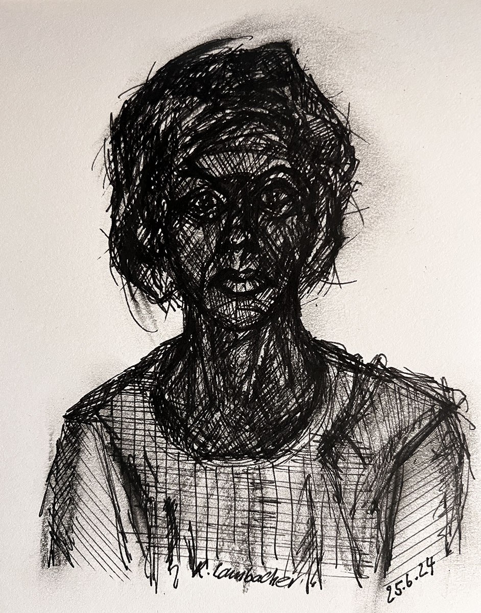 Tinte und Acrylstift auf Papier, 27x34cm, Titel: Anneliese, 2025