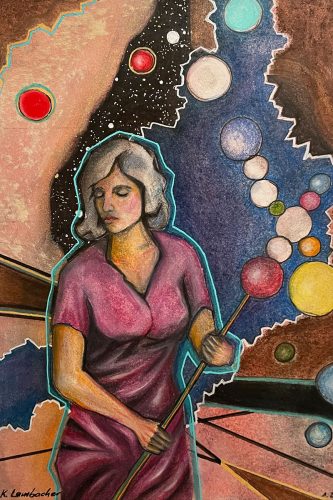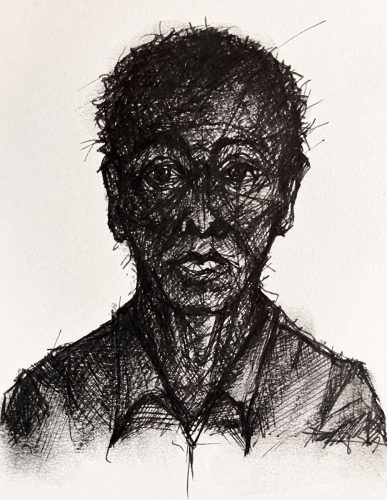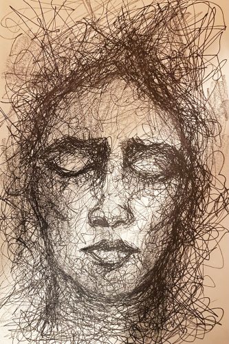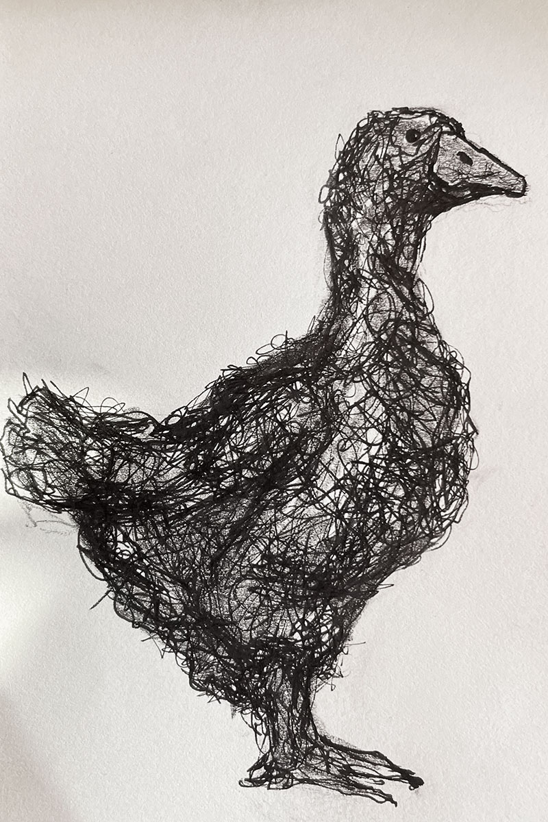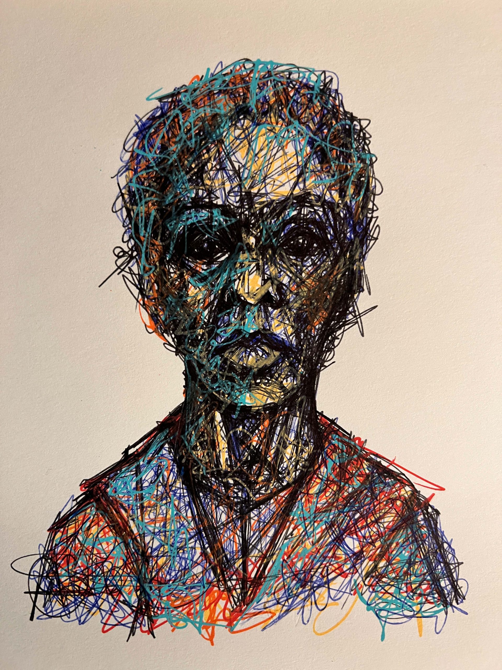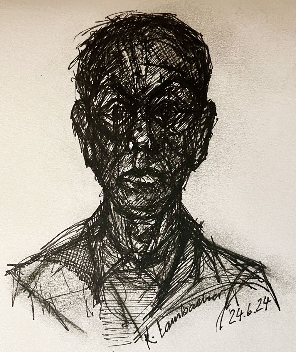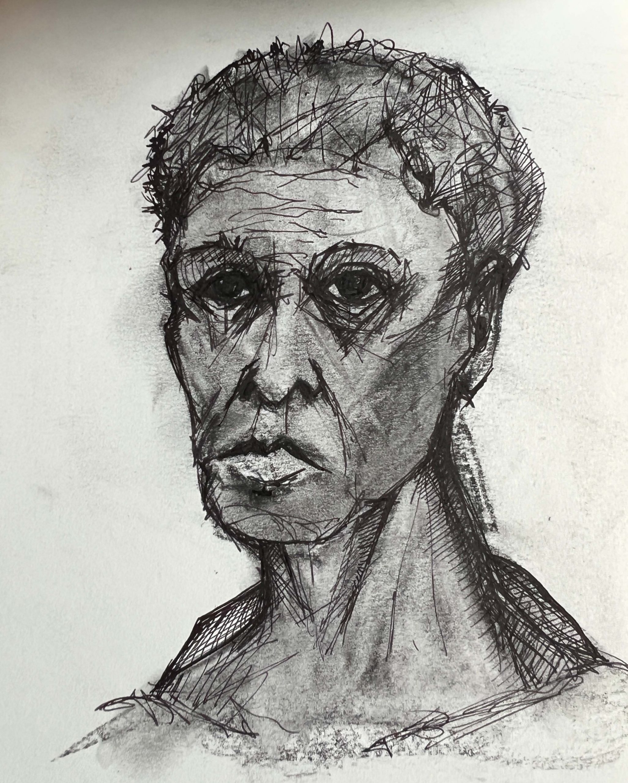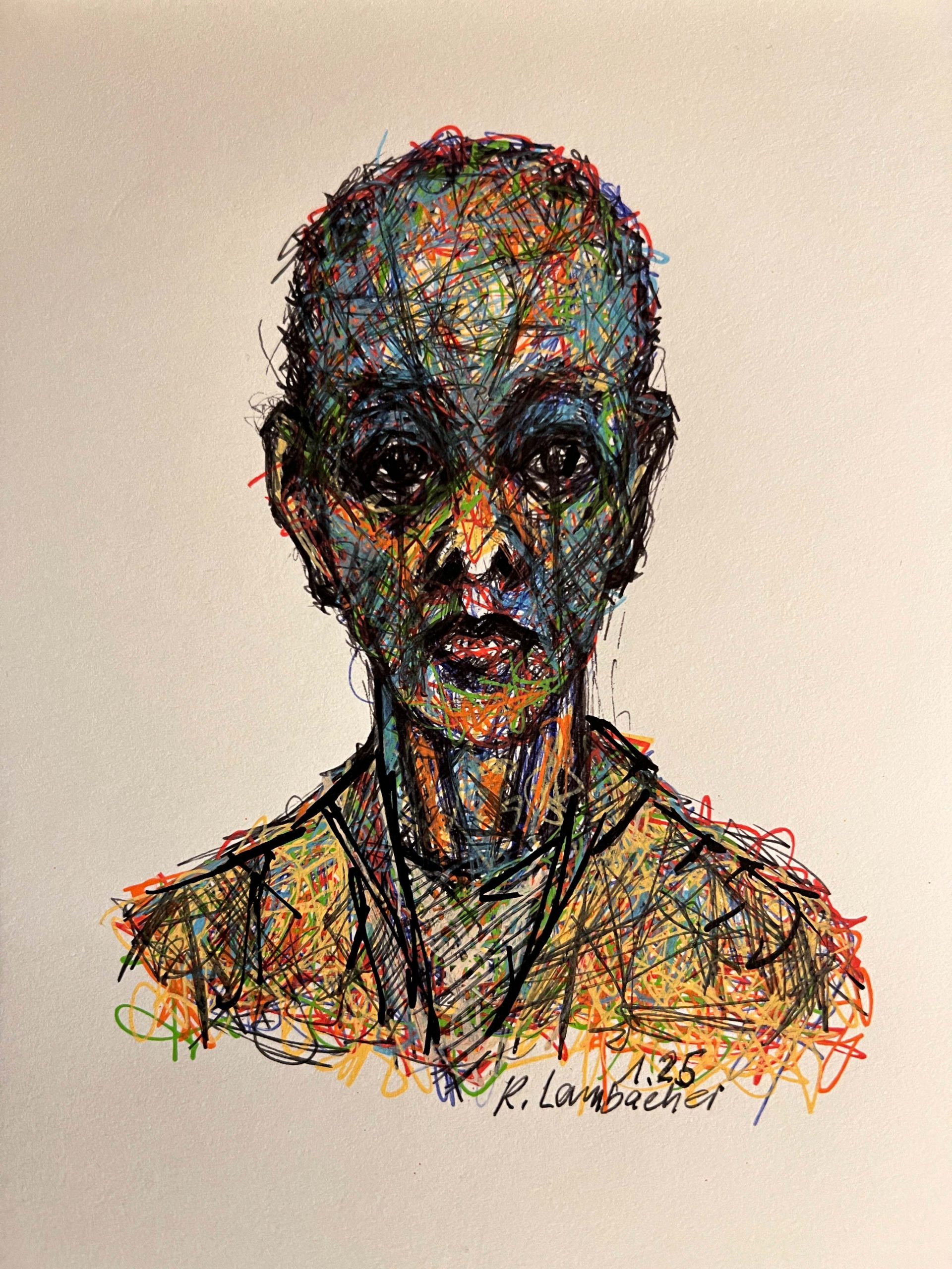 Tinte und Acrylstift auf Papier, 27x34cm, Titel: Anneliese, 2025