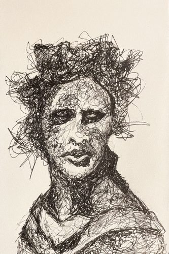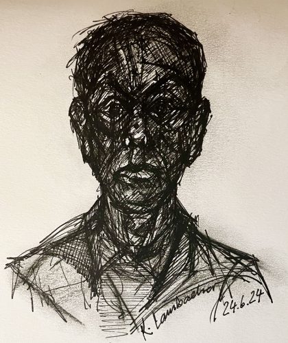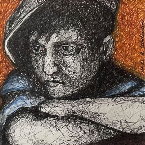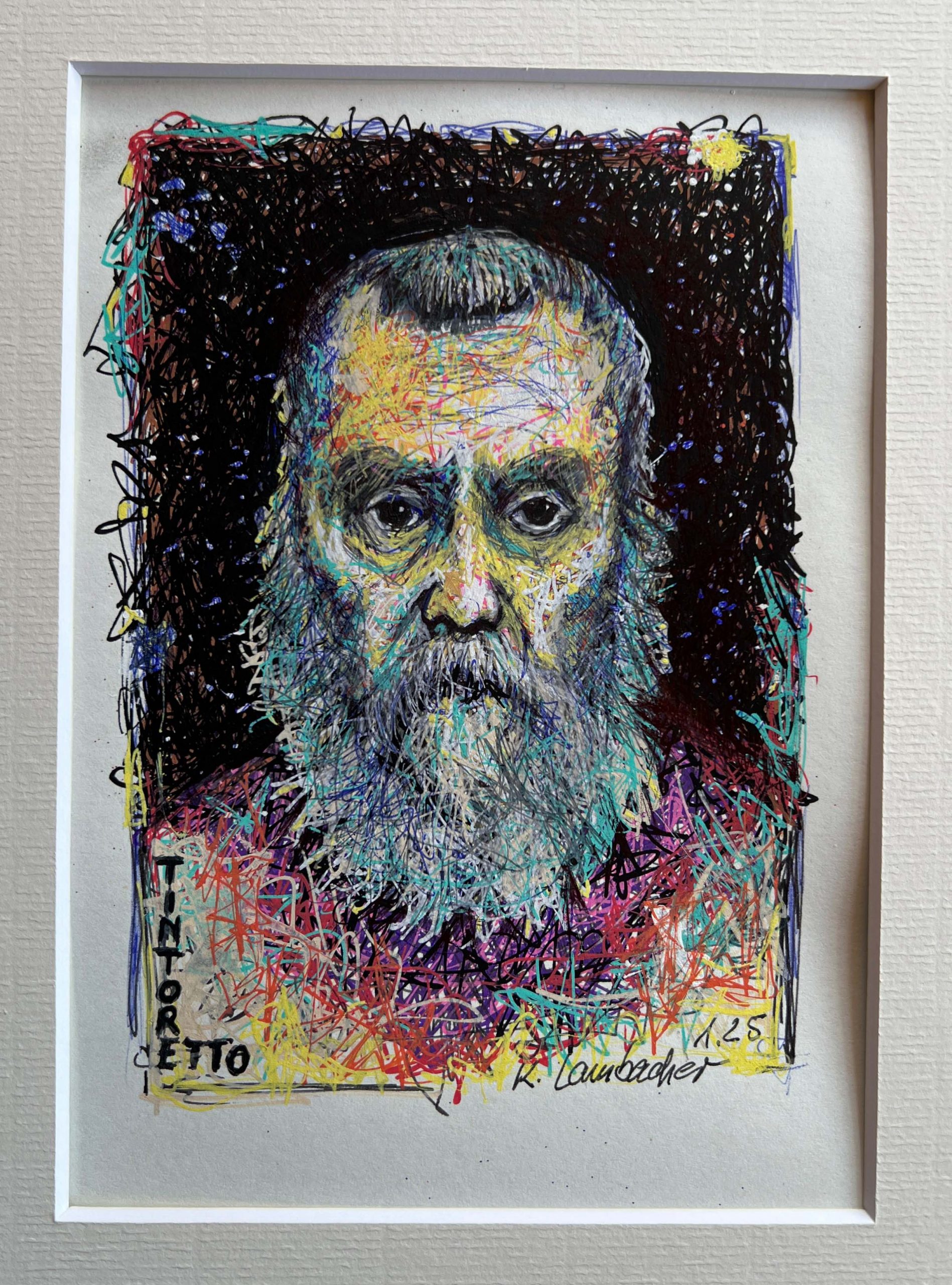 Tinte und Acrylstift auf Papier, 14x19cmTitel:Tintoretto, 2025