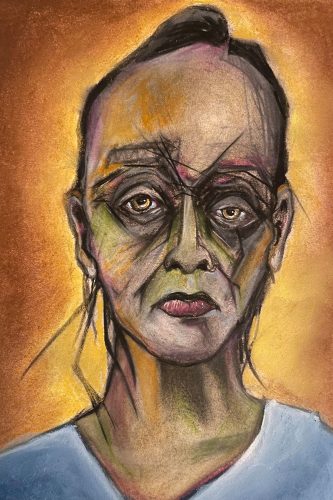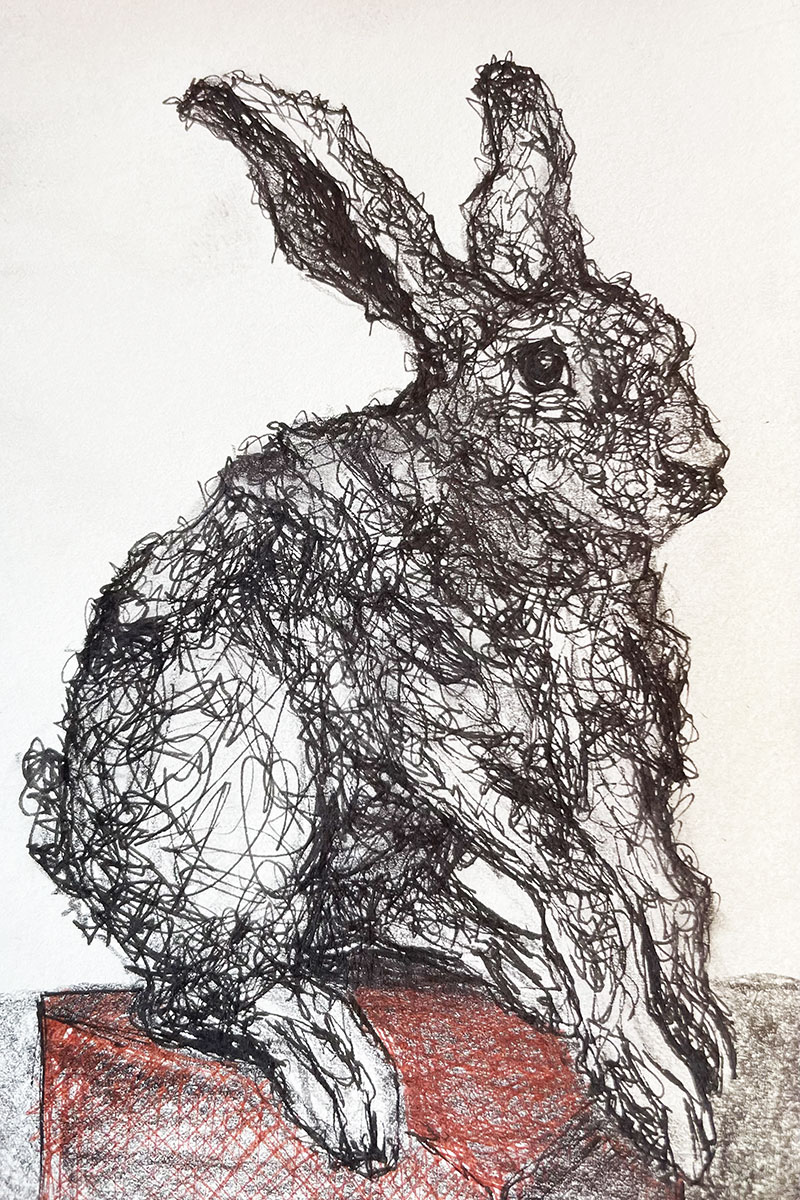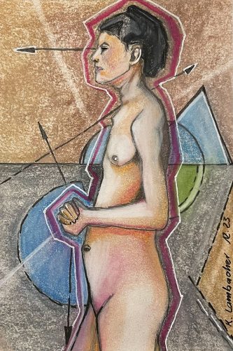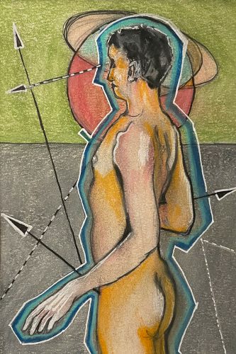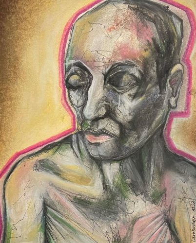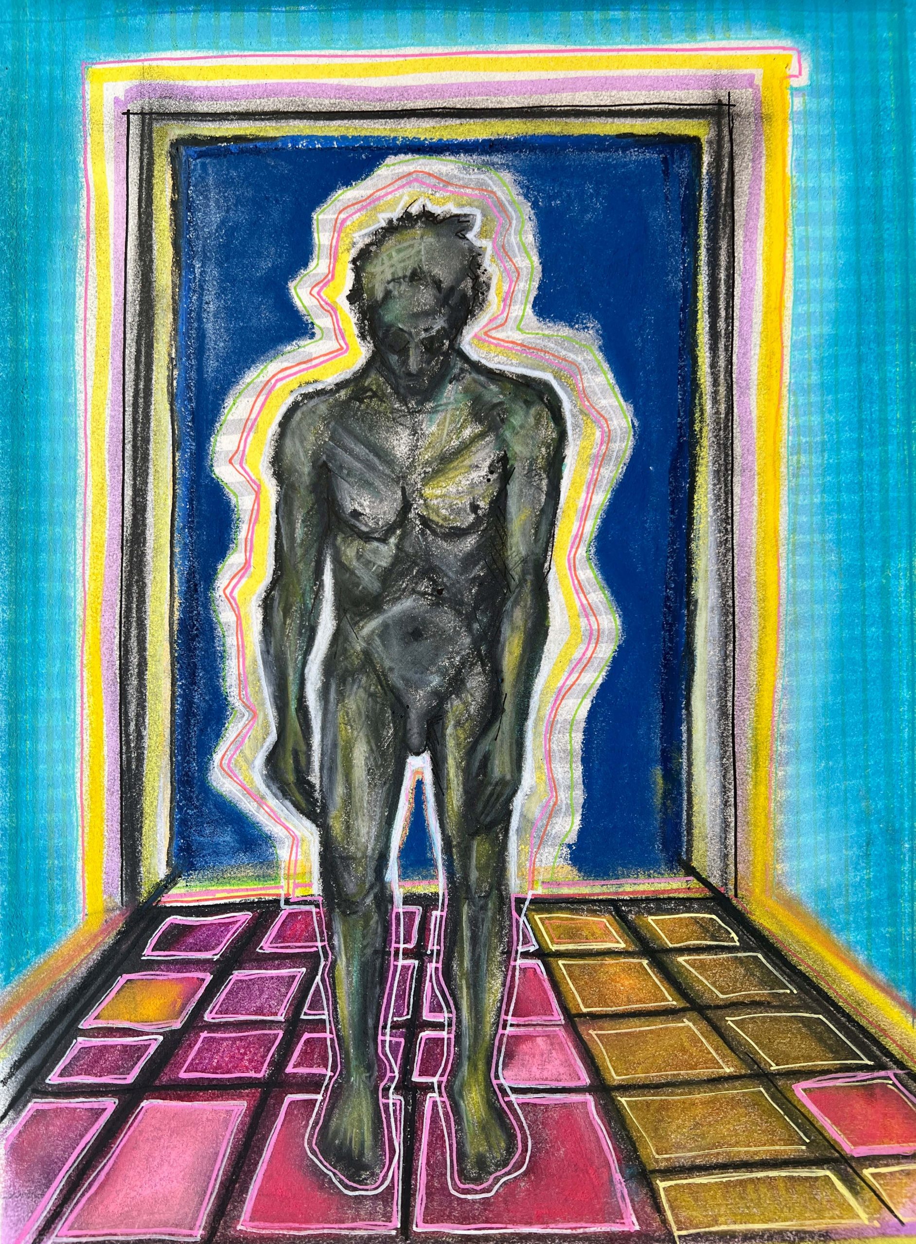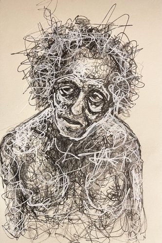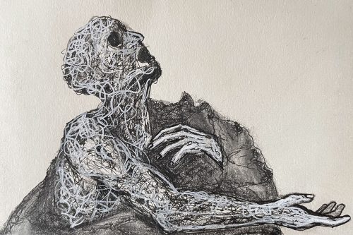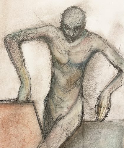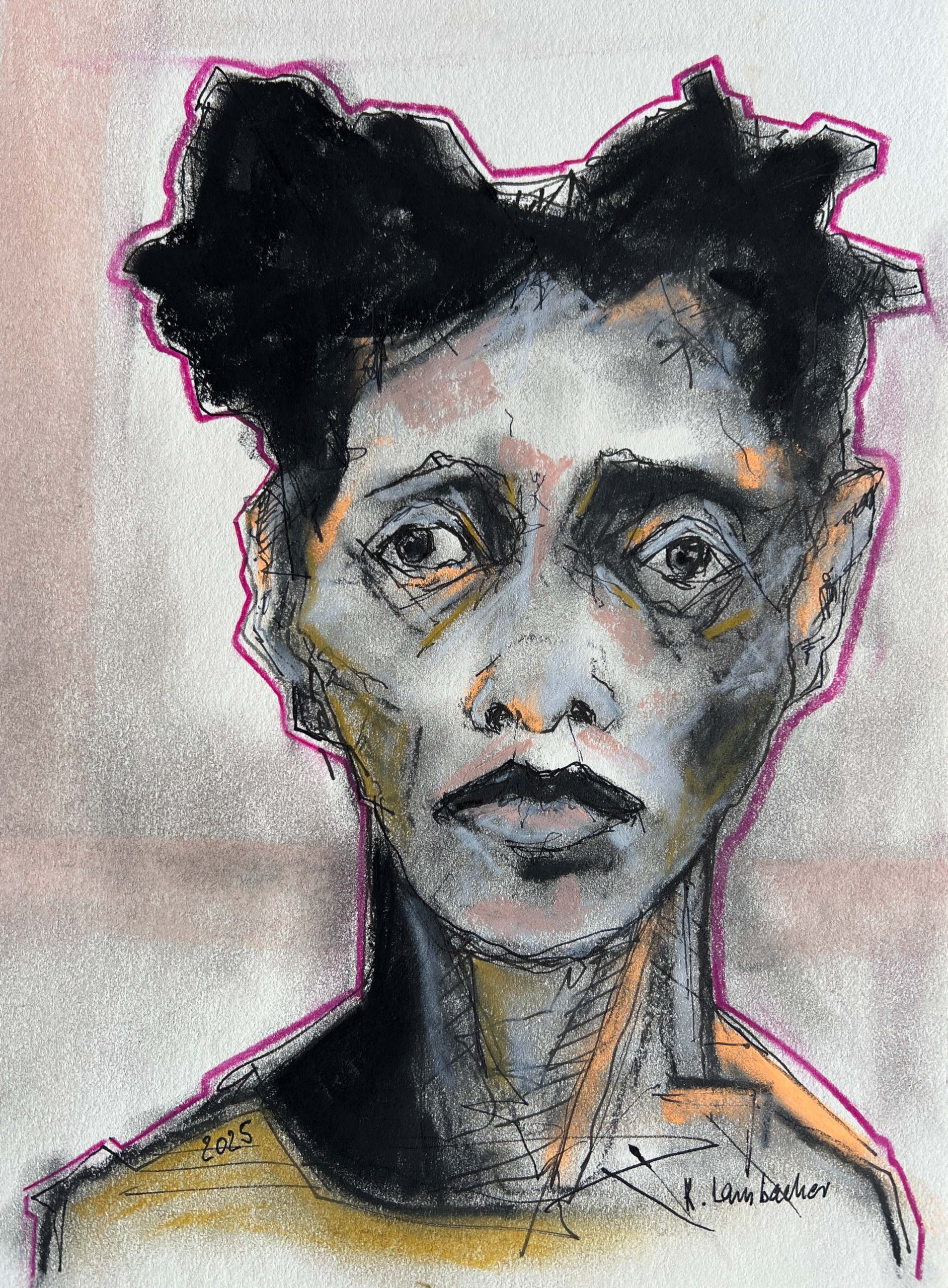Tinte, Kohle, Acrylstift und Pastell auf Papier, 27x34cm ohne Titel, 2025